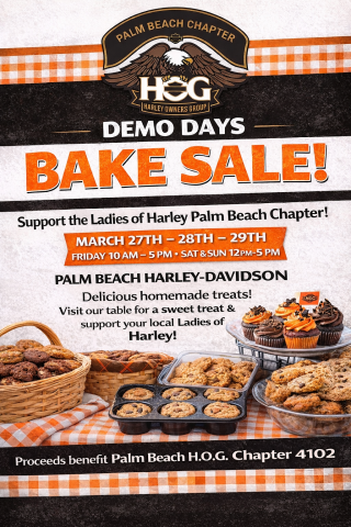 Photography Policy: Photographing, filming, recording and videotaping of activities and events will be occurring Palm Beach Chapter events. By entering the H.O.G.® event area, you irrevocably grant permission to the Harley-Davidson Motor Company® and its agents to photograph, film, record and/or videotape you and use (and authorize the use of) your name, image, likeness, voice, and/or biographical or other information in any and all media now known or hereinafter developed in perpetuity for any and all purposes.