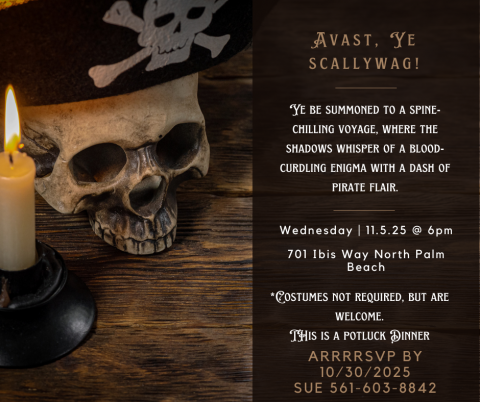 RSVP by October 30th to Sue Sauer  561-603-8842 or be prepared to walk the plank! ⚓️
