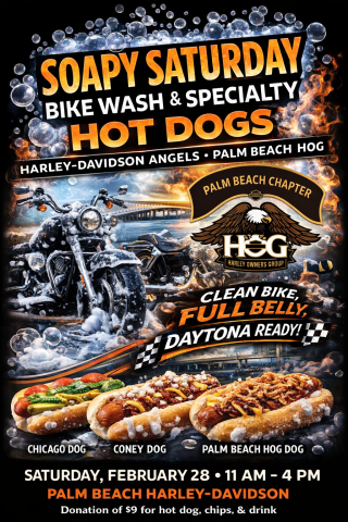 Join the Palm Beach HOG Chapter for a bike wash and our famous specialty hot dogs at Palm Beach Harley-Davidson.
